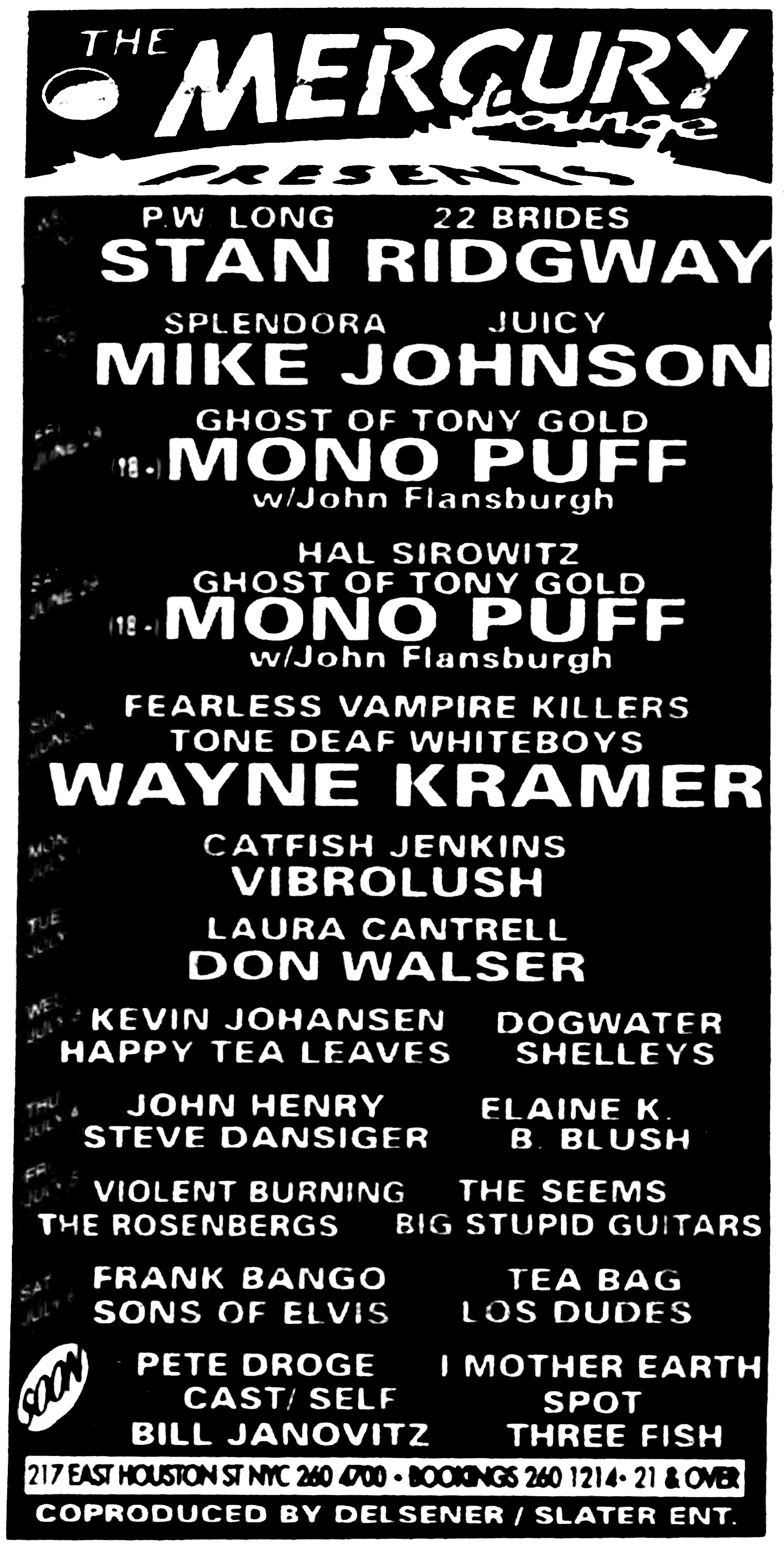 Listing for the 1996-06-28 and 1996-06-29 Mono Puff shows. From the July 2, 1996 issue of The Village Voice.