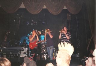Rare trombone Spy jam. L to R Eric Schermerhorn (back), Brian Doherty (back), Graham Maby, Dan Levine, Jim O'Connor.