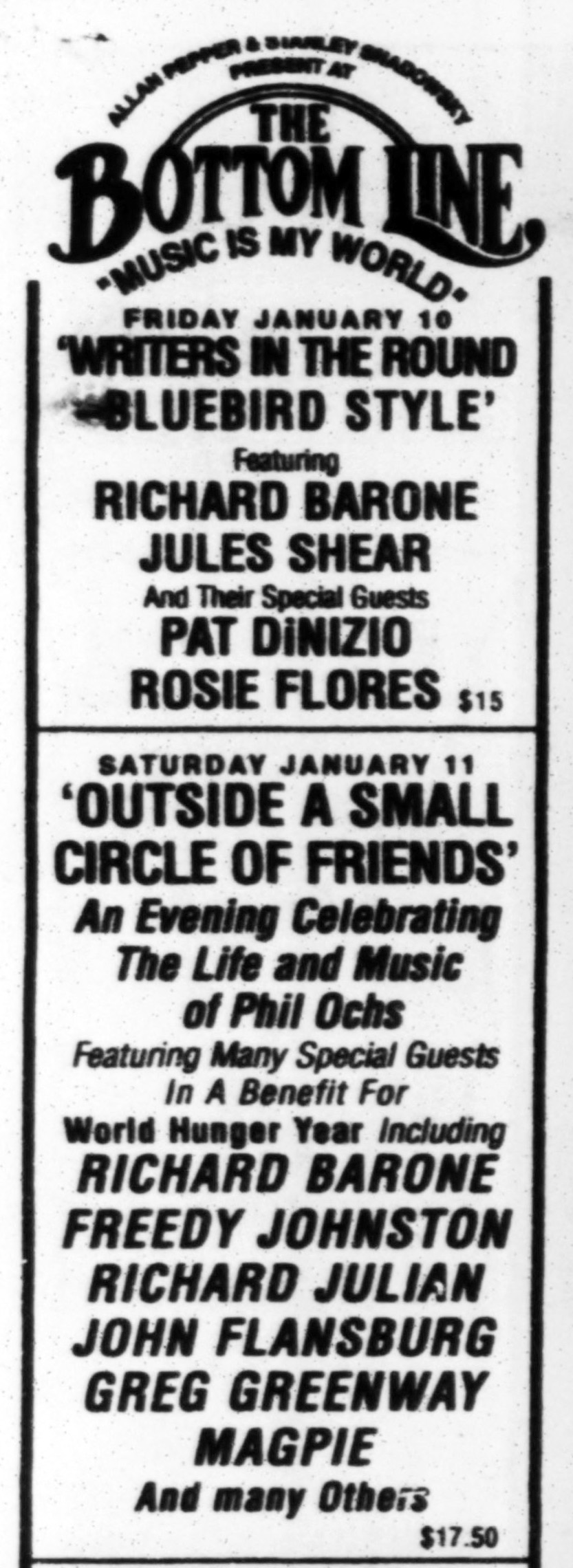 Listing for the Phil Ochs tribute show on January 11, 1997. From the January 14, 1997 issue of The Village Voice.