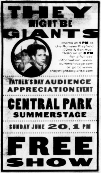 Advertisement for the 1999-06-20 show, from the June 22, 1999 issue of The Village Voice.