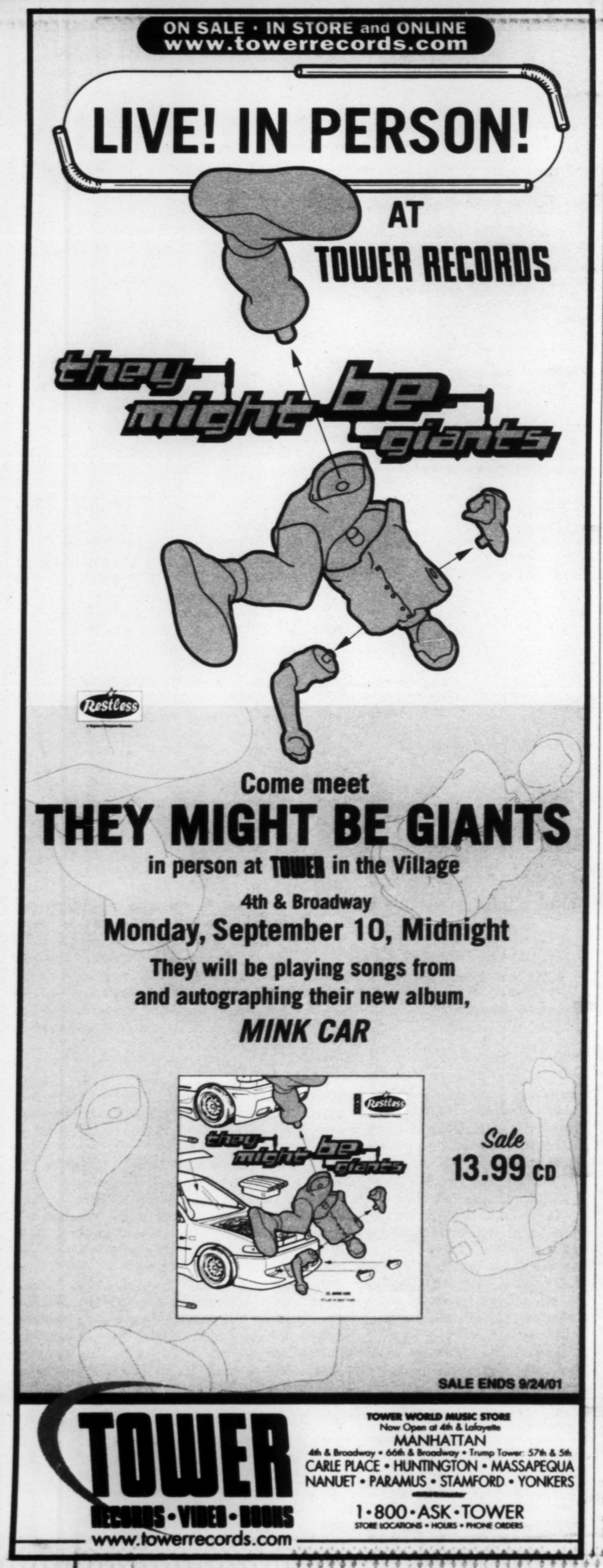 Advertisement for the 2001-09-10b show, from the September 11, 2001 issue of The Village Voice.