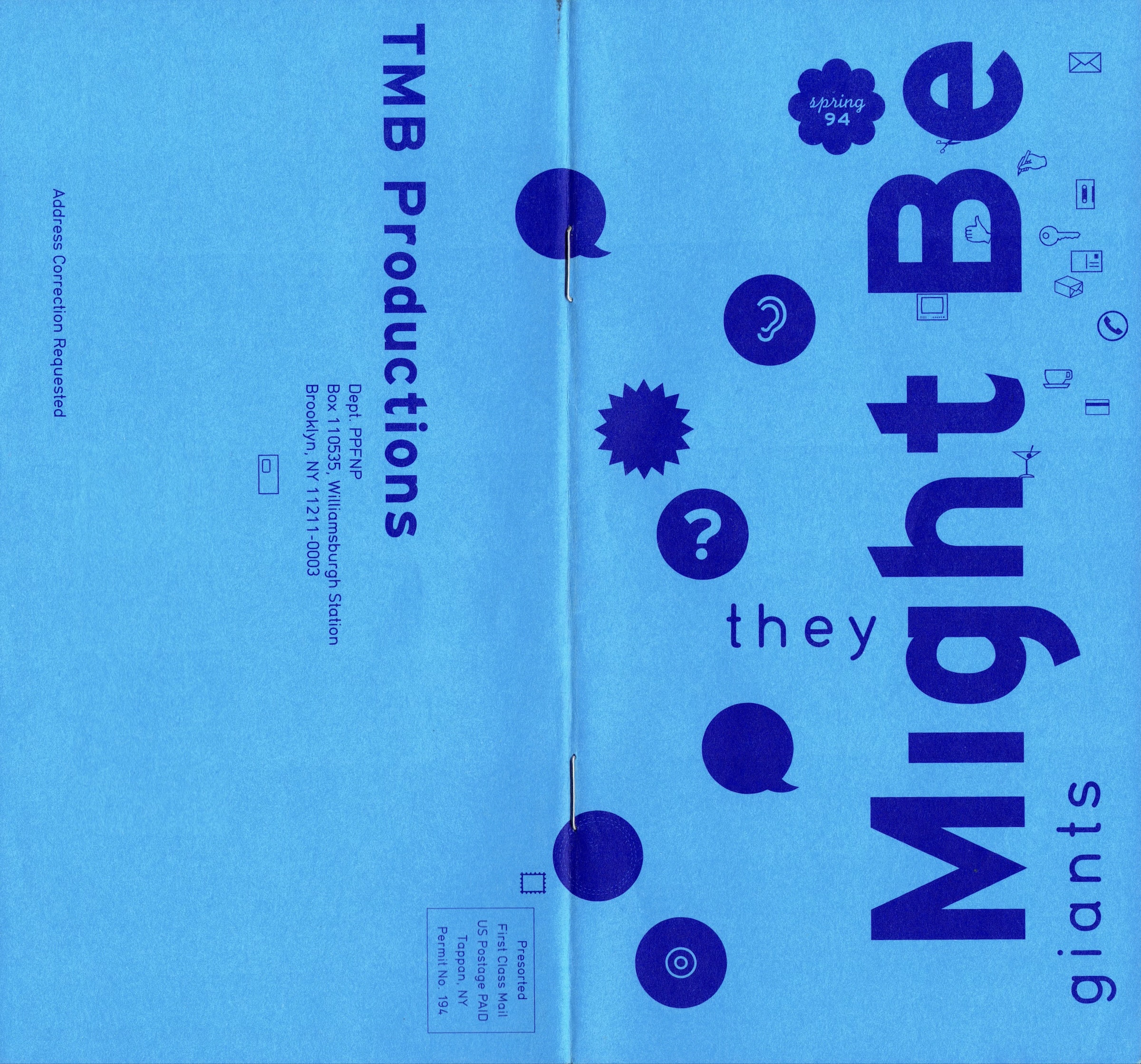 Front & back of TMBG Info Club Archive/Spring 1994