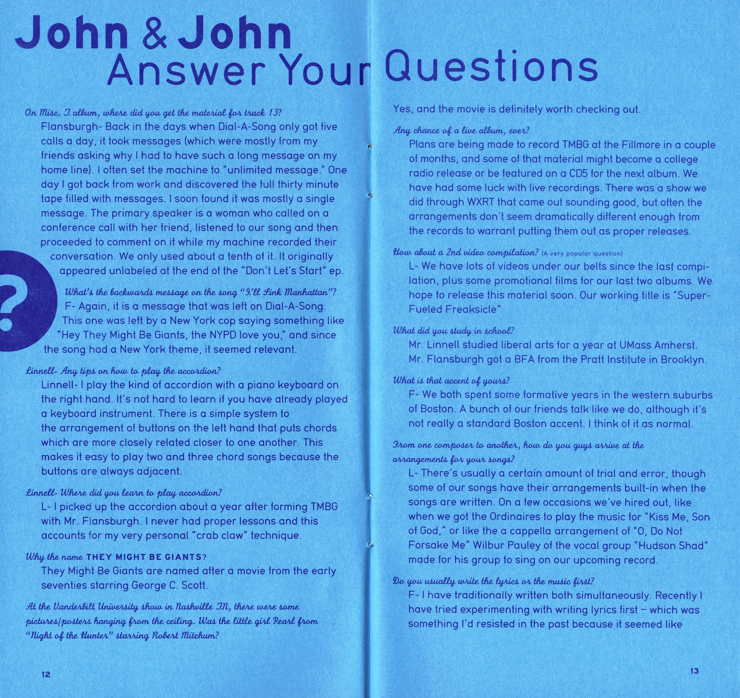 Pages 12 & 13 of TMBG Info Club Archive/Spring 1994