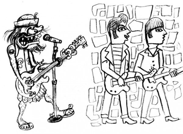 The initial drawings for "The Mesopotamians" music video, drawn by David Cowles.