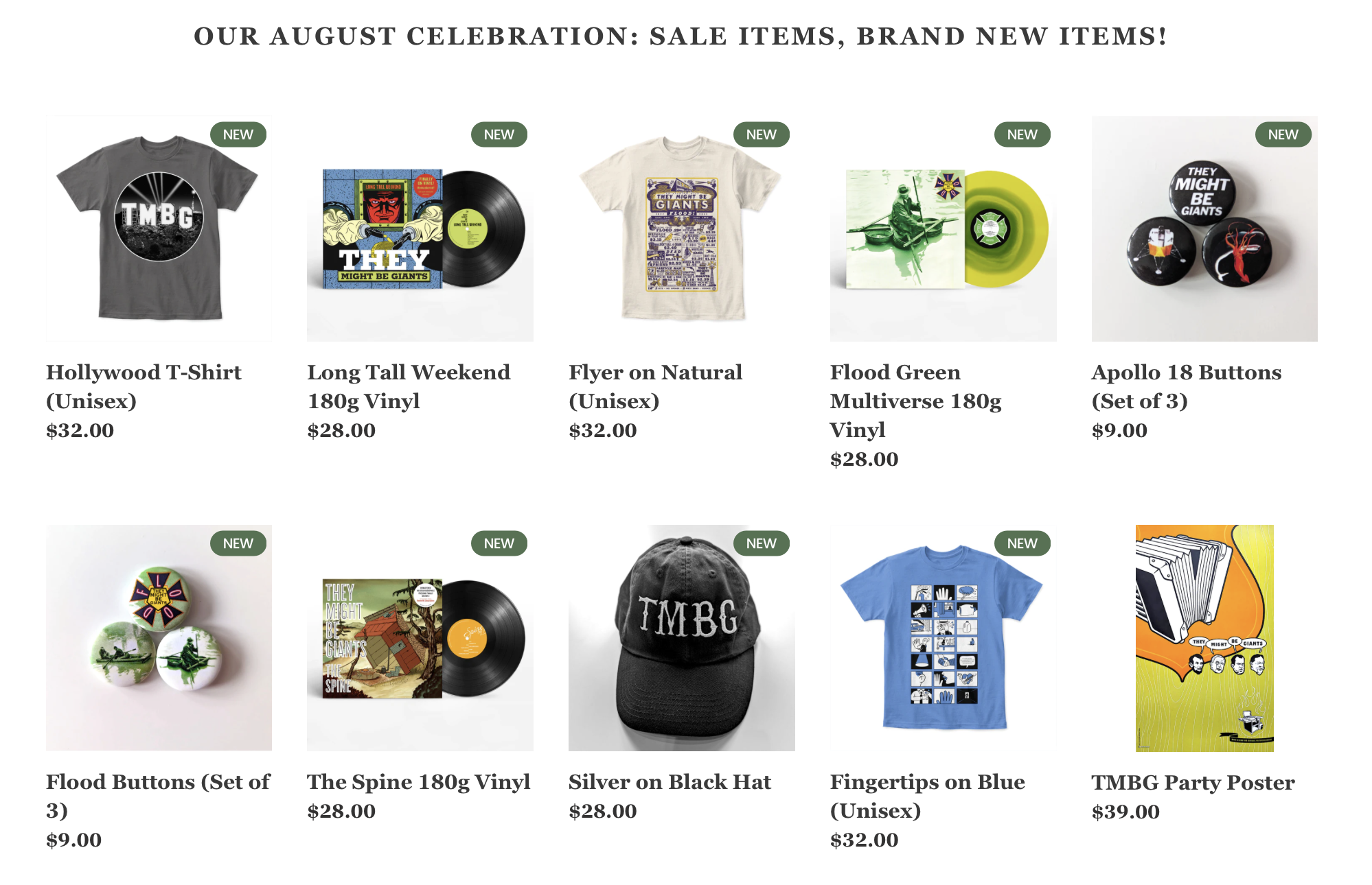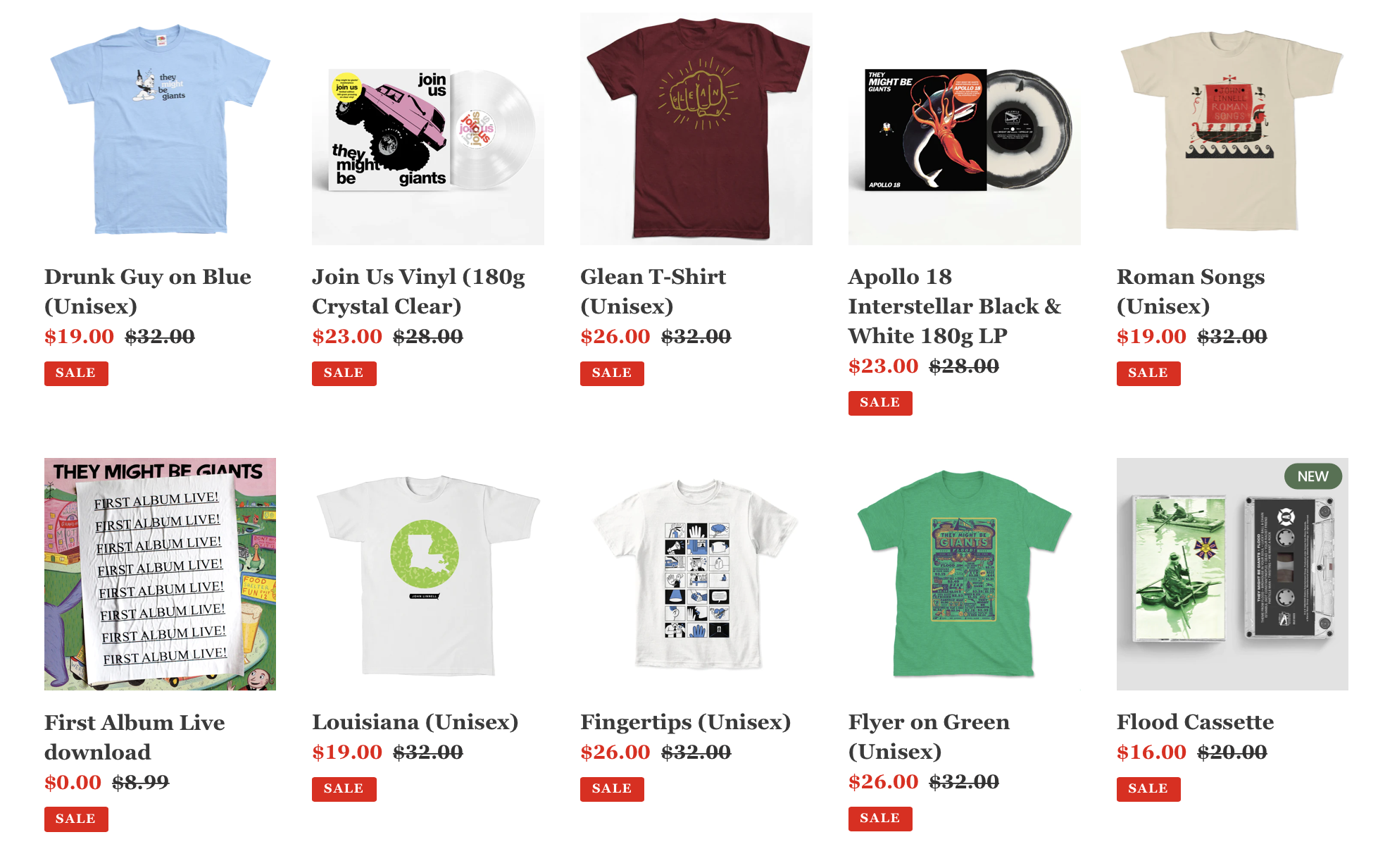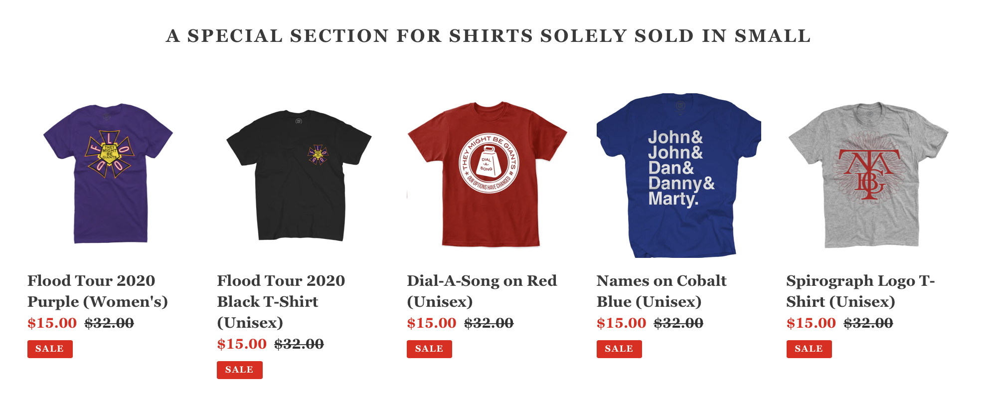 Our big annual summer sale is wrapping up, but we wanted to give everyone one last look at all these savings. Notable values include our 2023 tour shirt for 35% off, and five small shirts for 50% off. There is also brand new stuff for your consideration. And we also want to remind folks that the First Album Live download that is exclusive to our site is available now for FREE there as well.