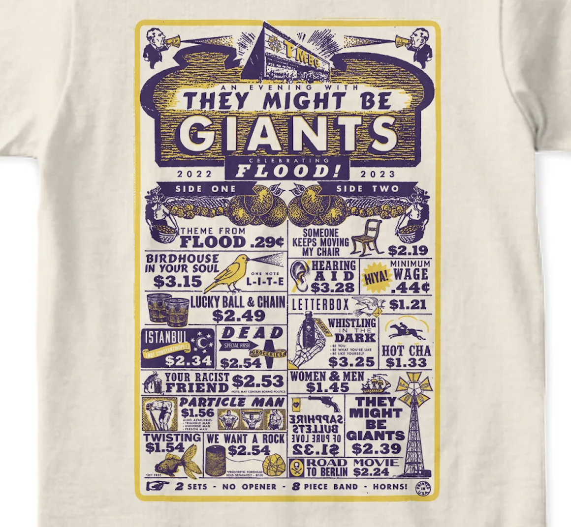 With the ITOOKOFFTHEINTELLECTUALS discount code, our 2023 Flood tour shirt rings up for just $15 right now. Small to 2XL. www.TMBGshop.com