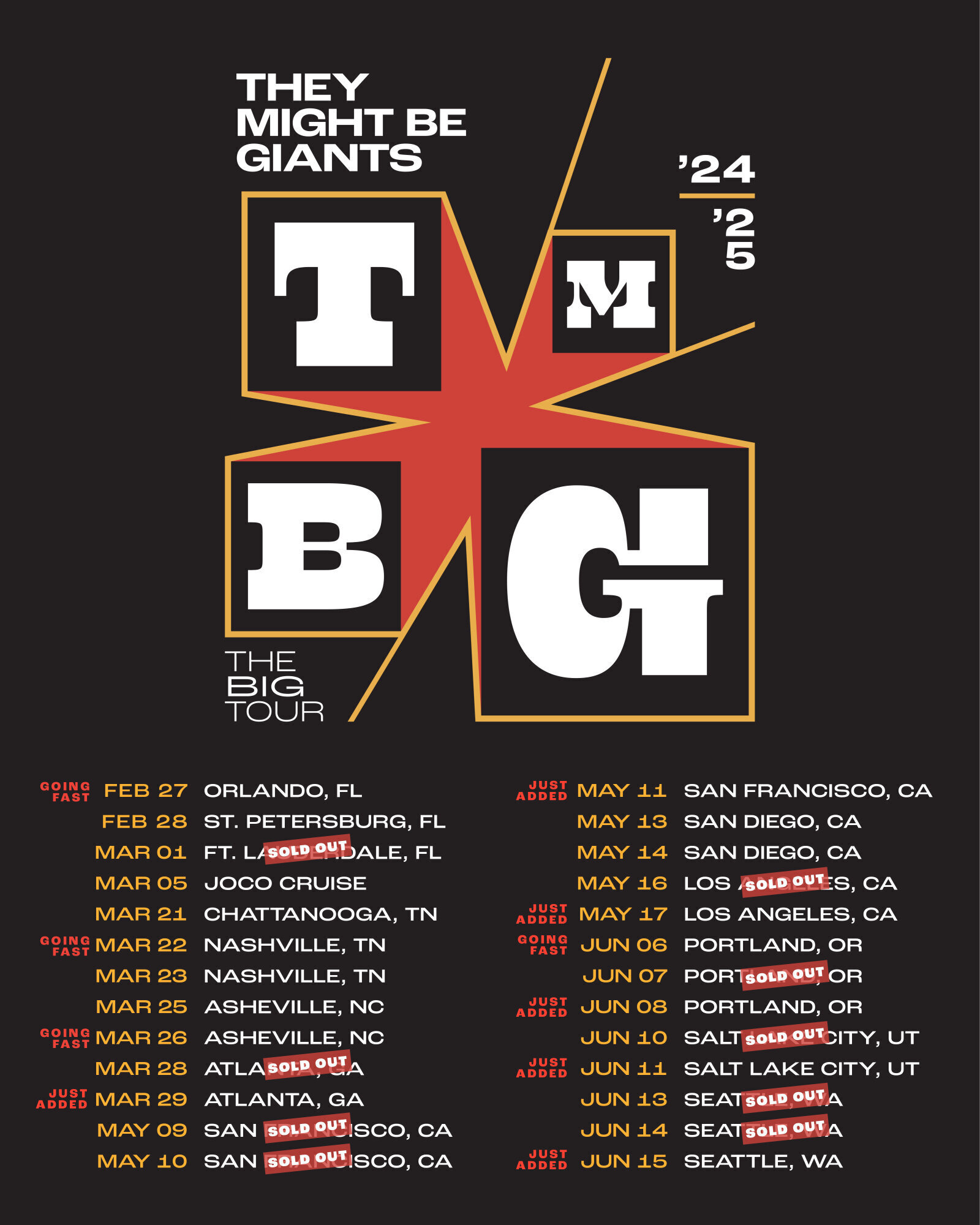 We are very excited to announce, due to overwhelming demand, a ton of additional shows coming up in the south and on the west coast. Many of the shows already announced are also selling steadily and are closing in on selling out, so just a heads up to everybody to get focused up soon even though it might seem a ways away. All of these shows will feature the eight-piece band and the new free-range, cage-free song selection that seems to keep both ourselves and you all super psyched. Album spotlights should be expanding and all two-night stands will feature pretty different repertoire.