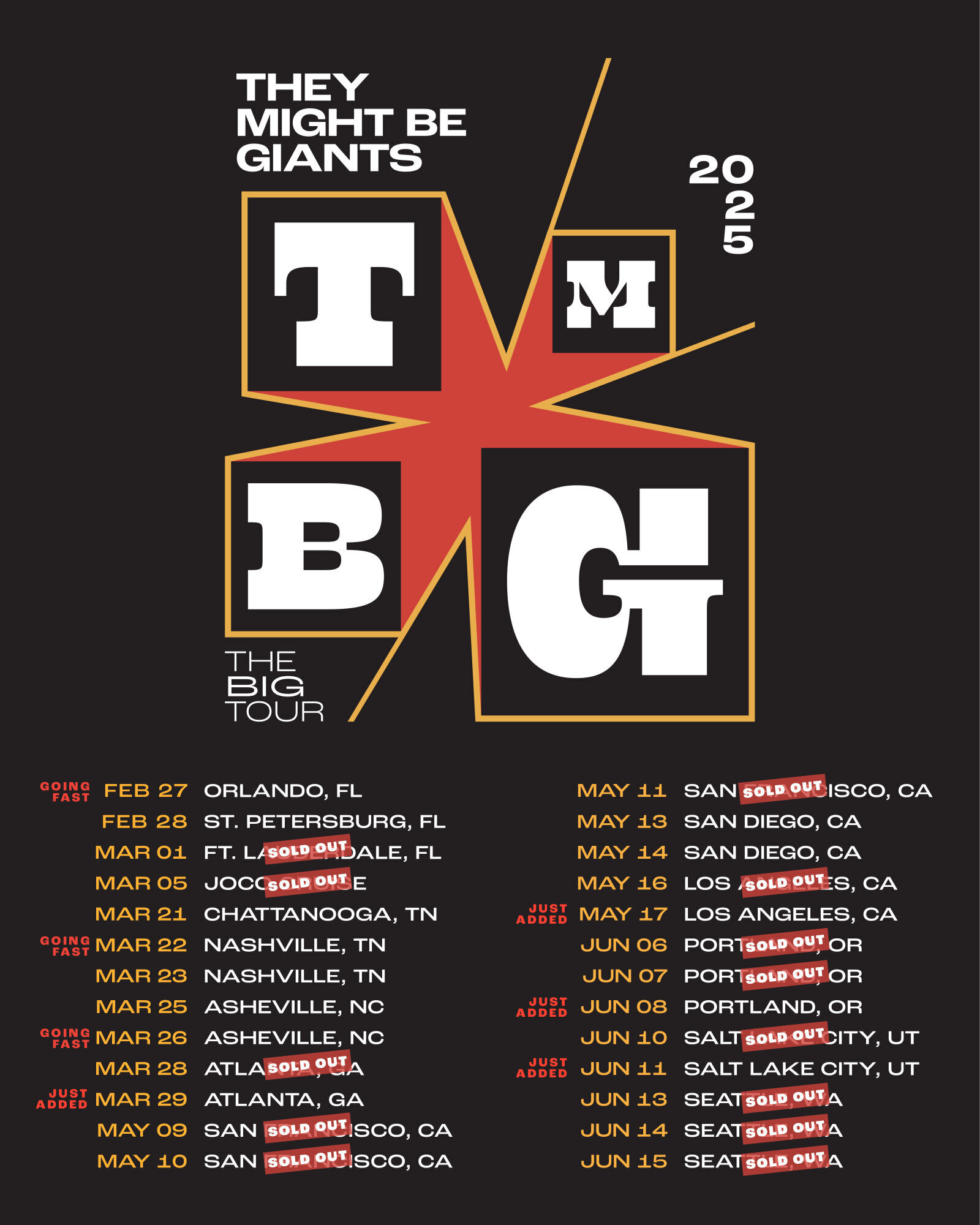 🚨Most TMBG shows are SOLD OUT! 🚨ATL Nashville Asheville next! 🚨48 hr sale! 20% off and a FREE album download! 🎁[edit]