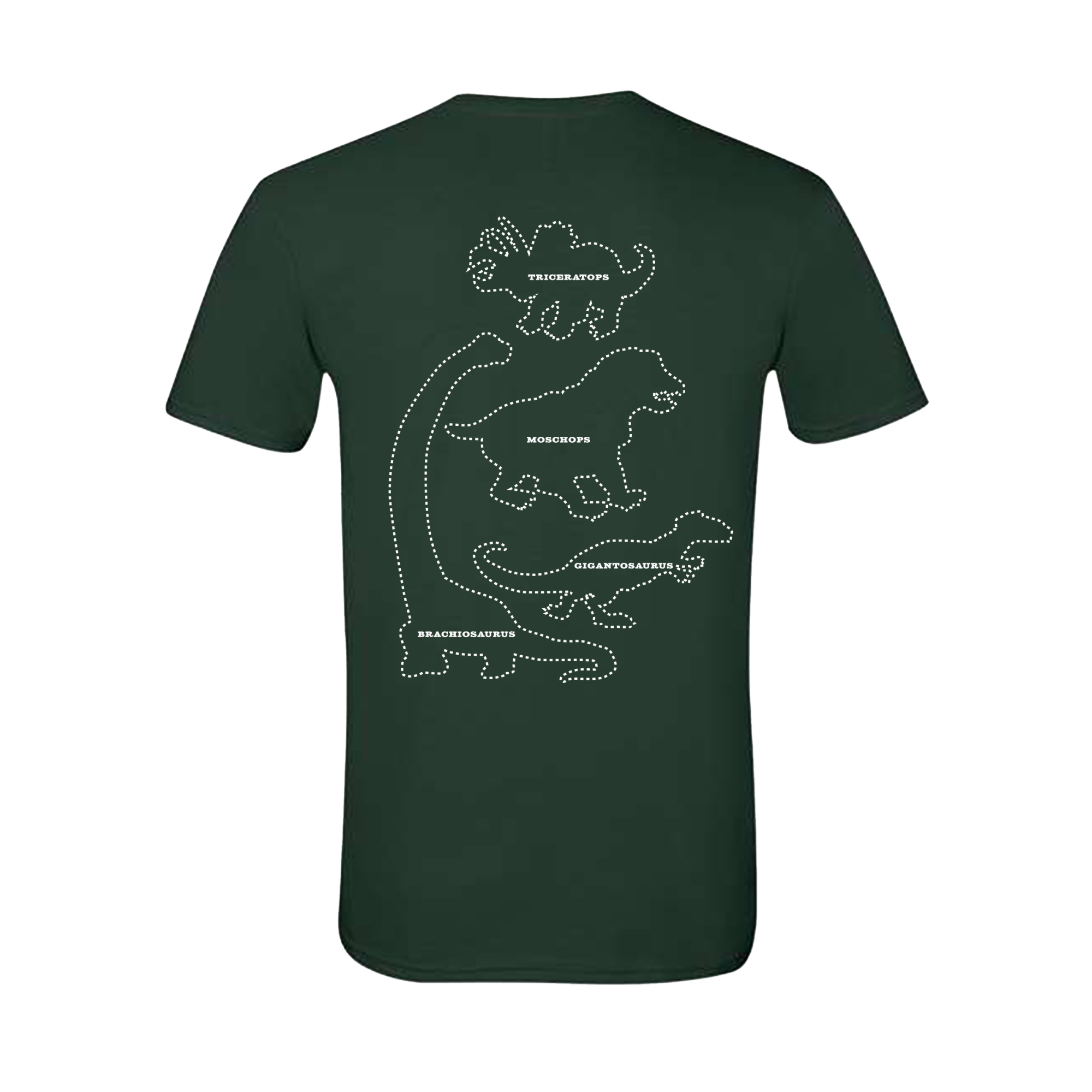 Long ago, when we first embarked on making songs for kids as well as adults, a half-dozen friends in a half-dozen different settings pulled us aside and whispered conspiratorially one word –– “Dinosaurs.” Of course, being the treble-kickin’ indie rockers that we were, we immediately recoiled from the obvious. But in the fullness of time and with the persuasion of visual artist David Cowles (the man who brought you the Fingertips shirt, The Mesopotamians video, the Escape Team videos, and so many other TMBG moments) we now have this ingenious design. And, for this pre-order we are making it in every form — from 5XL all the way down to onesies with kid sizes in between. Will we keep making them in all these sizes? Well, we probably can’t because the demand might not be there. But that’s why we need to LIVE FOR TODAY and do the things that BRING EVERYONE PLEASURE. We want to encourage you to be you, and perhaps get a jump on your holiday shopping. The one thing we can guarantee is it will be the perfect gift for any sized human in your life, and you’ll be so happy you thought ahead to get it going now.