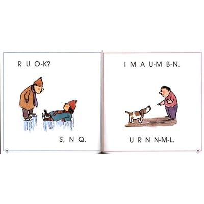 - Steig is a pretty well-known precursor. The Slate review of "Here Come the ABCs" says, "'I C U' is a heart-tugging country lament in the tradition of William Steig's CDB!" See an image from CDB! here and more examples of picture captions here ("I C U," "R U O-K?" etc.). Octoflange 15:46, 14 November 2010 (UTC)