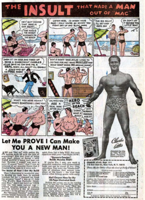 - "That ad" refers to a comic book ad for the Charles Atlas fitness program, in which a boy has sand kicked in his face.