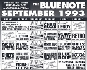 | current | 20:36, 25 June 2025 | 2,382 × 1,915 (953 KB) | Mrsomebodyelse (talk | contribs) | {{Show Listing}} Calendar featuring acts at the Blue Note in September 1993. https://shsmo.access.preservica.com/uncategorized/IO_386f3703-be67-441c-999b-ed9ad85df5c8/ |