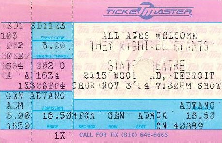 A ticket stub from the 1994-11-03 show