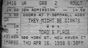 A ticket stub from the 1998-04-16 show