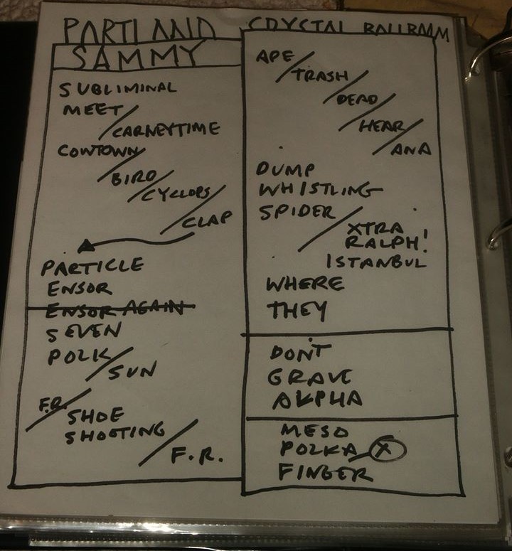 A setlist from the 2009-11-11b show posted to the Miscellaneous T Facebook group by William Harker