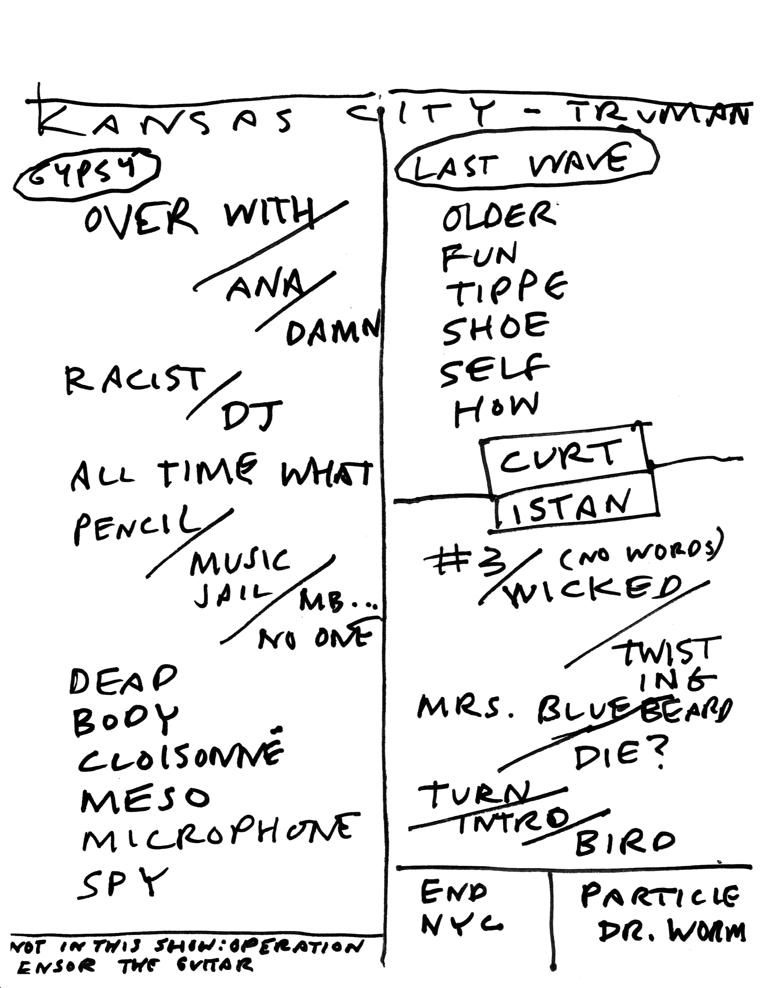 A setlist from the 2018-03-13 show, scanned by Wireless mike