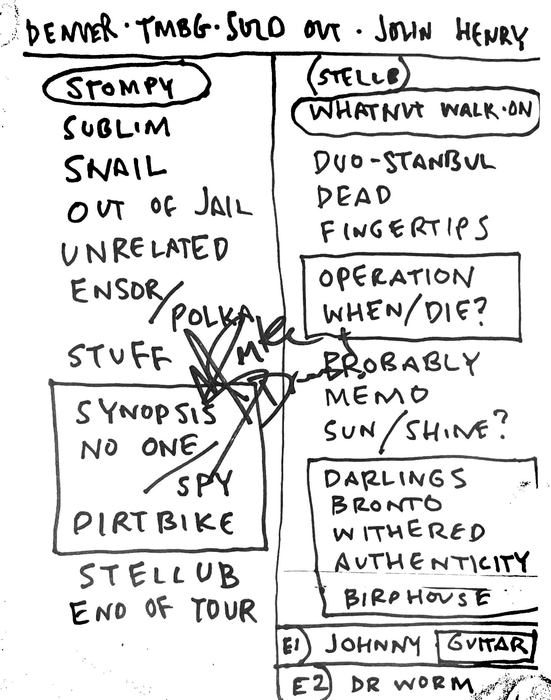 A setlist from the 2025-09-27 show via DJ Microbe on the TMBW Discord