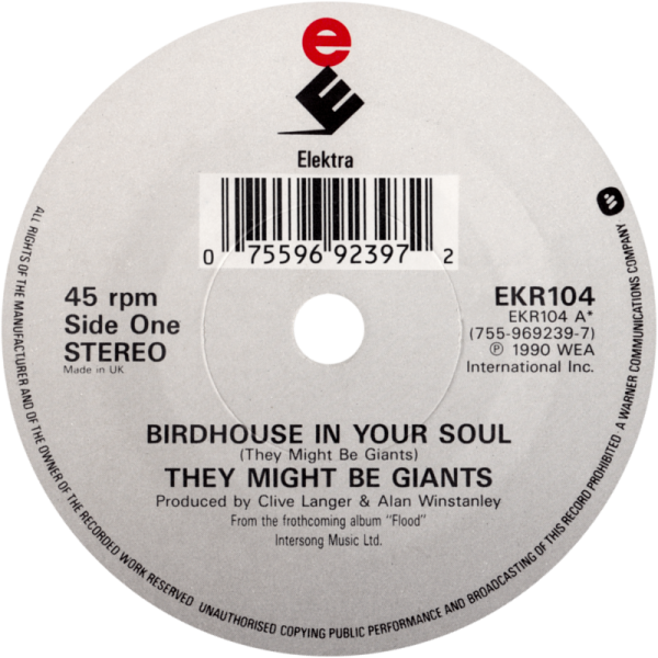 A-side label of the Birdhouse In Your Soul UK 7" single.