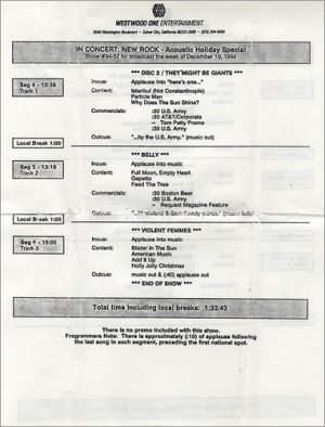 | Label | Westwood One (Show #94-52) | Length | 1:31:43 (including commercial breaks) | |||