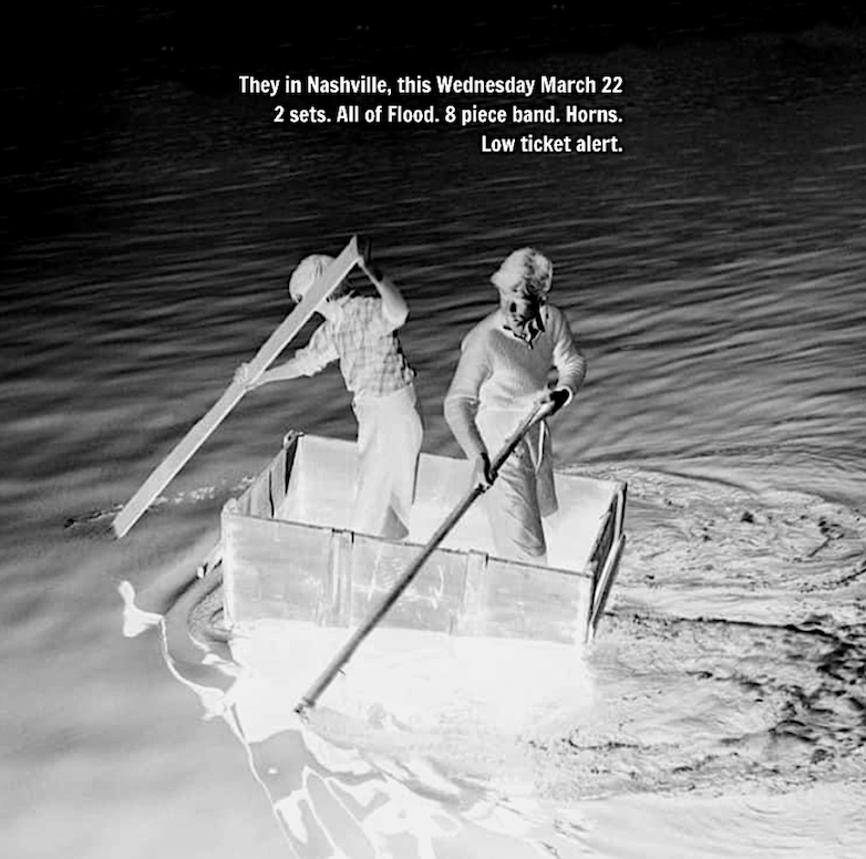 THE FLOOD SHOW FLOATS INTO NASHVILLE THIS WEDNESDAY.