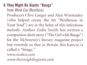 | 6 | Bangs | They Might Be Giants | 3:09 |