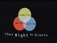 The idea seems to have originally been formulated for the Apollo 18 promotional video as seen to the right. The phrase was later used to title the TMBG compilation A User's Guide To They Might Be Giants: Melody, Fidelity, Quantity.