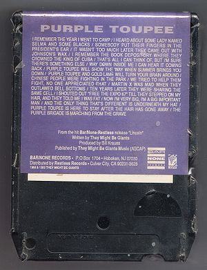 Did you know... that in a 1989 promotional stunt, Bar/None distributed deprecated, irrelevant 8-track tapes with labels advertising They Might Be Giants' single "Purple Toupee"?