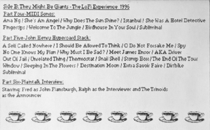 The Low Fidelity Experience is a 1996 fan bootleg. It is notable for having archived much of the first online Dial-A-Song service.